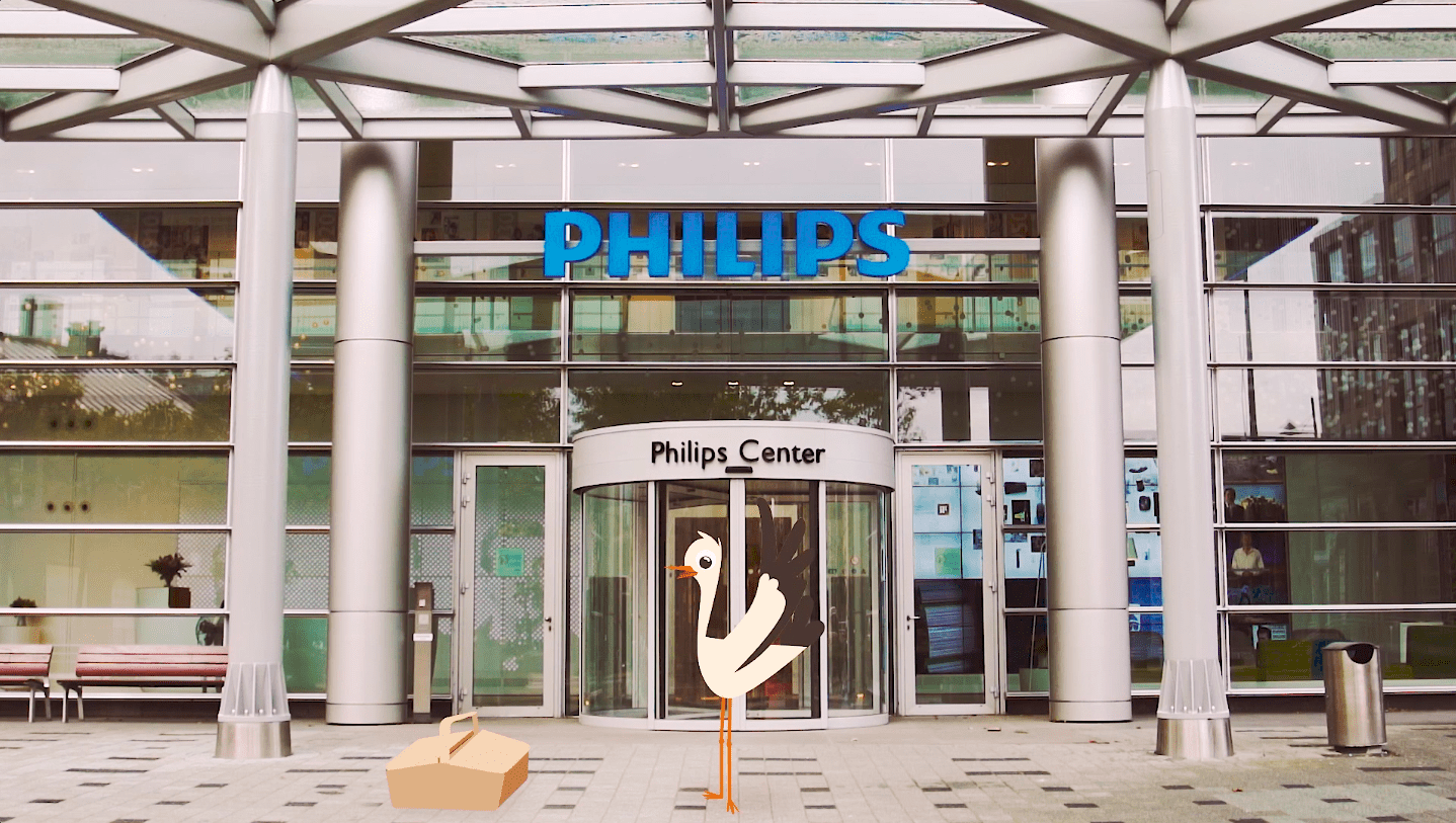 Philips Avent baby bottles reached its two millionth fan on Facebook. To celebrate this fan we created a little clip where the new born mom was surprised with a gift basket. With the help of an animation and a drone we gave the suggestion that a Stork brought the gift.