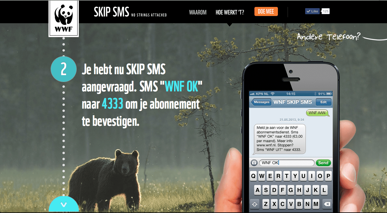 Introducing the new SMS Skip to all the WNF supporters. Using a website and campaign that shows how WNF Skip works.